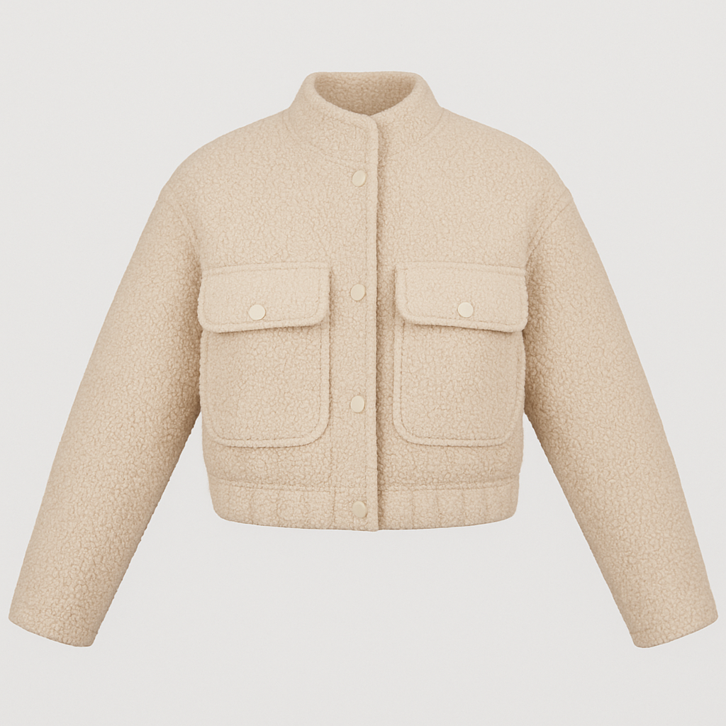 Wrap yourself in effortless elegance with the Clara Bouclé Jacket — a chic blend of cozy texture and polished tailoring. Designed in plush bouclé fabric, this cropped silhouette features bold utility-style pockets and a sleek stand collar, making it the perfect layering piece for elevating your everyday style. Whether paired with denim for an off-duty edge or styled over a slip dress for a modern twist, this jacket promises versatility with a luxurious finish.