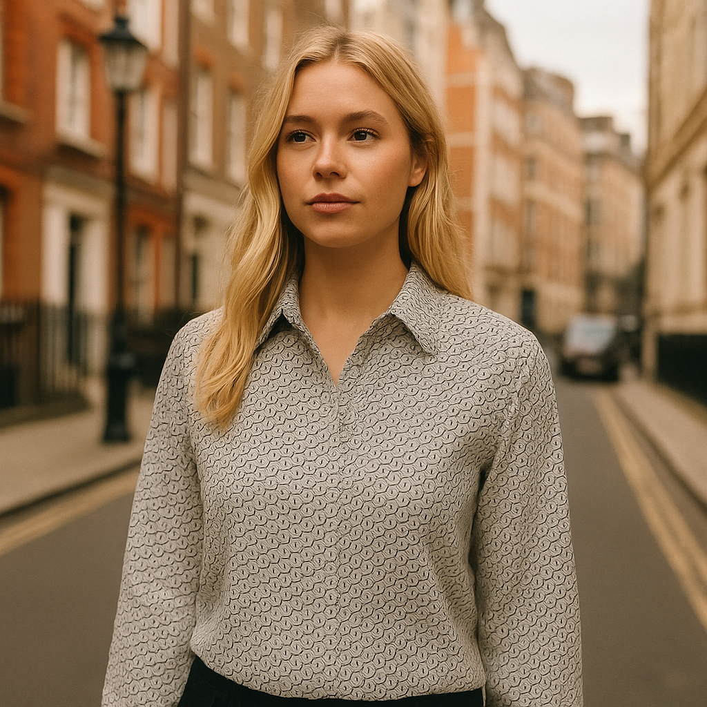 Make a modern statement with the Valeria Geo Print Blouse, designed for the woman who loves to stand out effortlessly. Featuring a chic black geometric wave pattern over a crisp white base, this blouse blends sophistication with a touch of playfulness. Its relaxed fit and full button-down front make it versatile enough to wear tucked into tailored pants for work or styled with jeans for an elevated casual look.