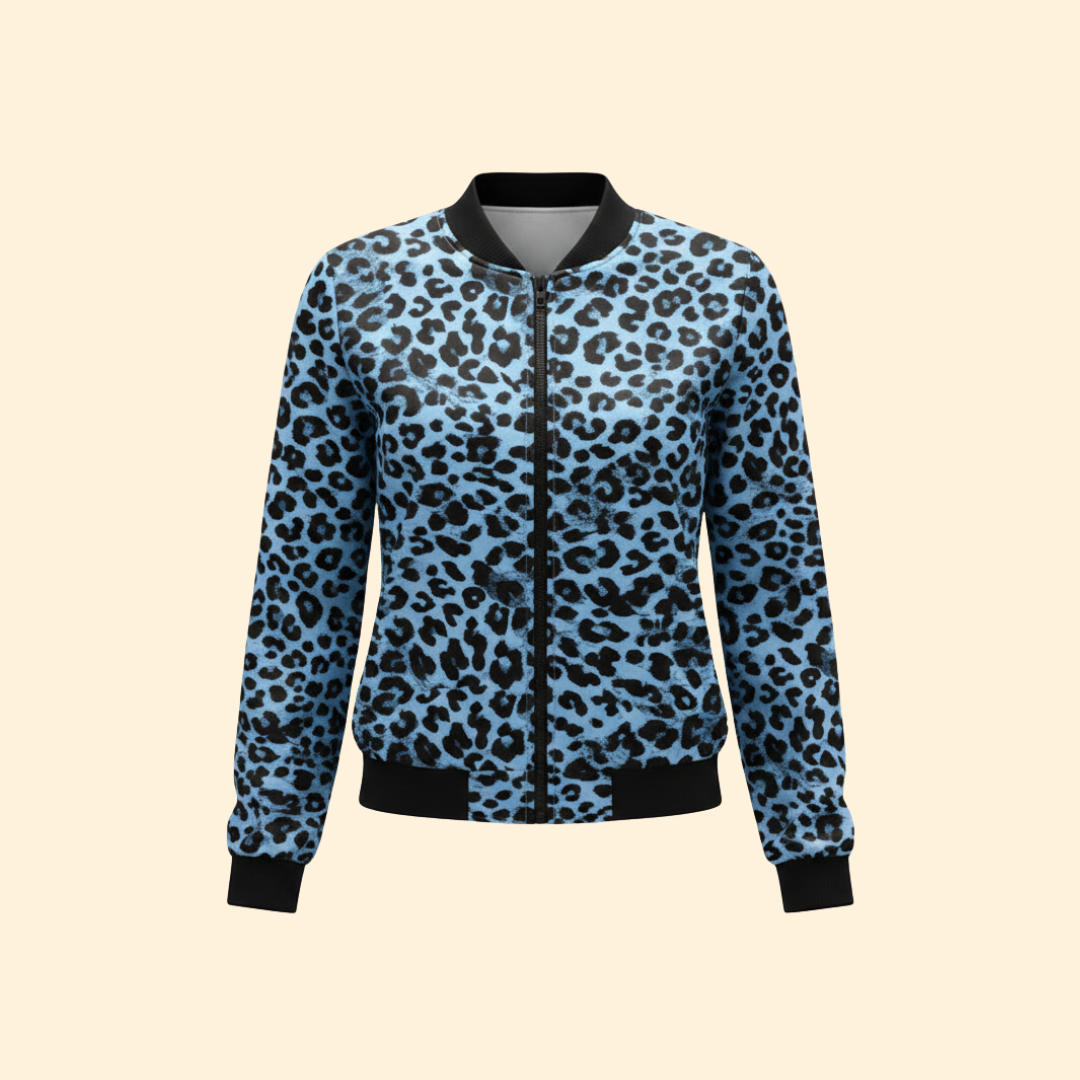 Women’s Leopard Print Bomber Jacket with Zip Closure