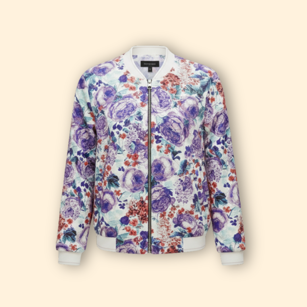 Women’s Fashion Bomber Jacket with Floral Print Design
