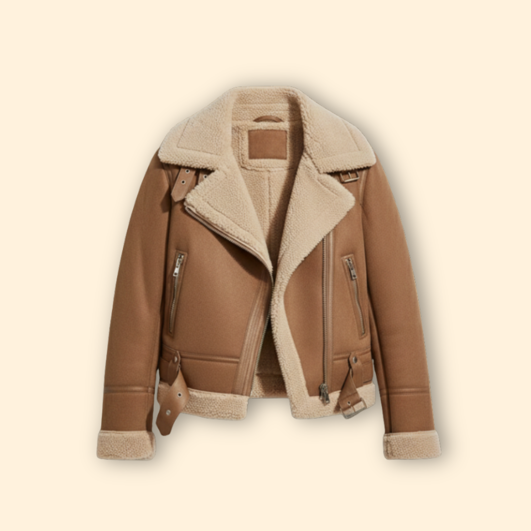 Women’s Suede Bomber Jacket with Long Sleeves