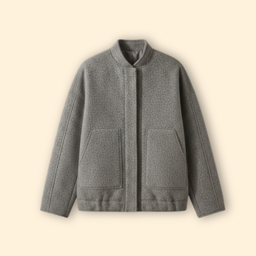 Women’s Oversized Wool Bomber Jacket with Snap Closure