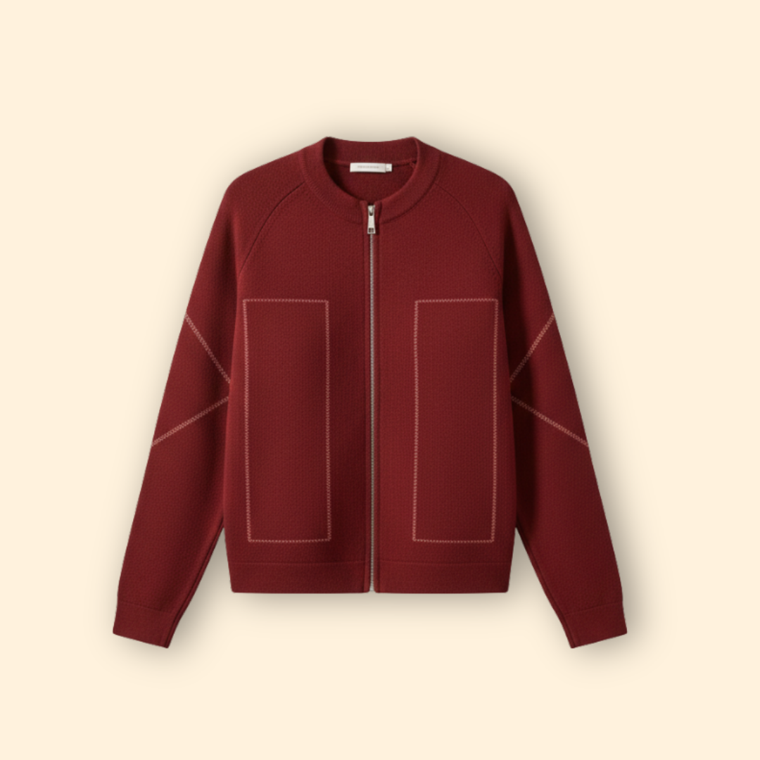 Women’s Zip-Up Bomber Jacket with Contrast Stitching