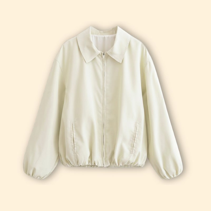 Women’s Zip-Up Bomber Jacket with Balloon Sleeves