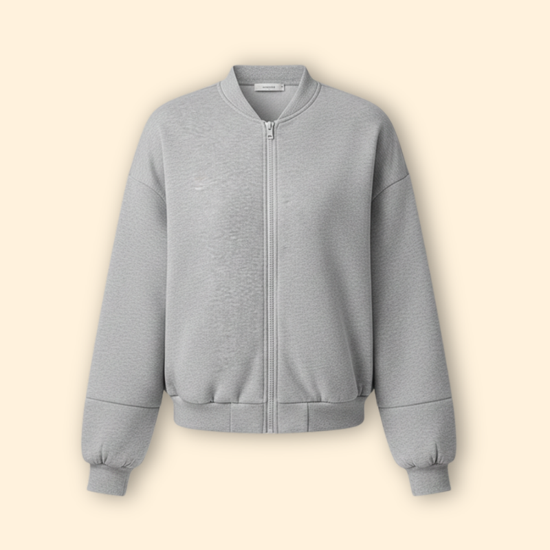 Women’s Zip-Up Bomber Jacket with Ribbed Cuff Design