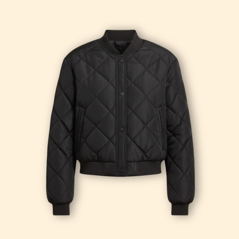 Women’s Quilted Bomber Jacket with Diamond Stitch Design