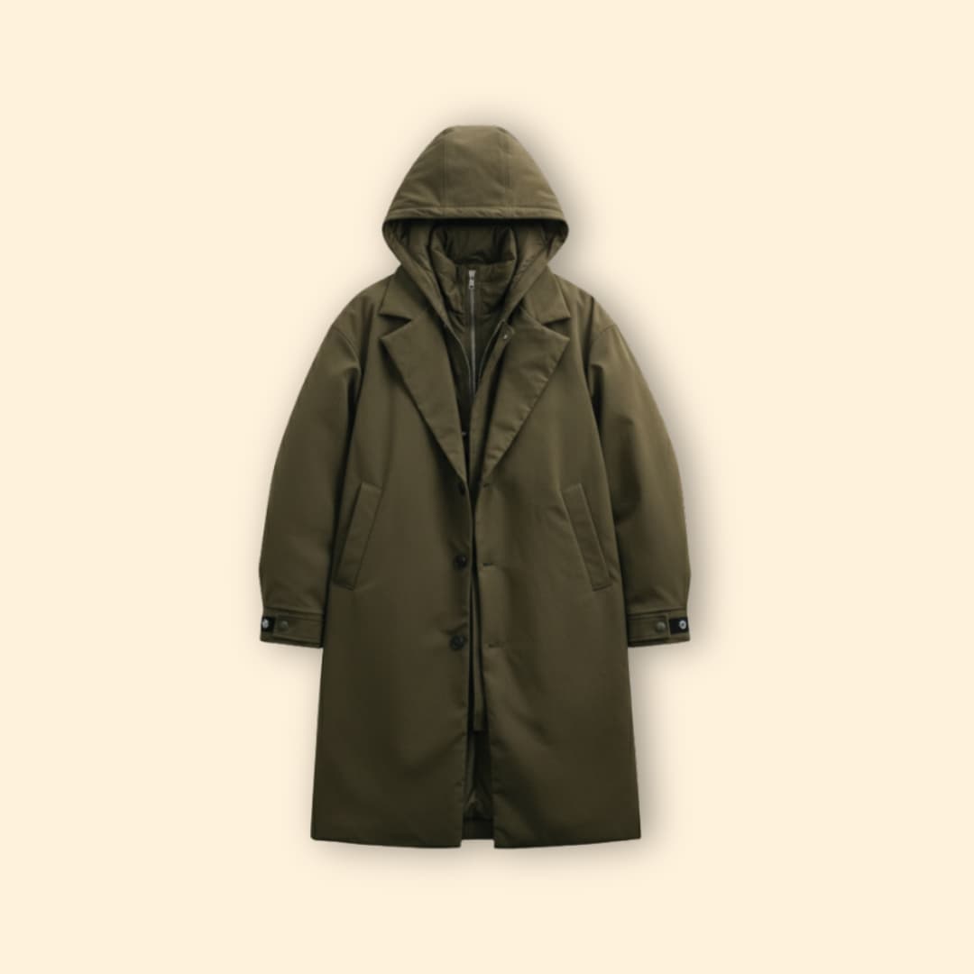 Men’s Long Coat with Hooded Design
