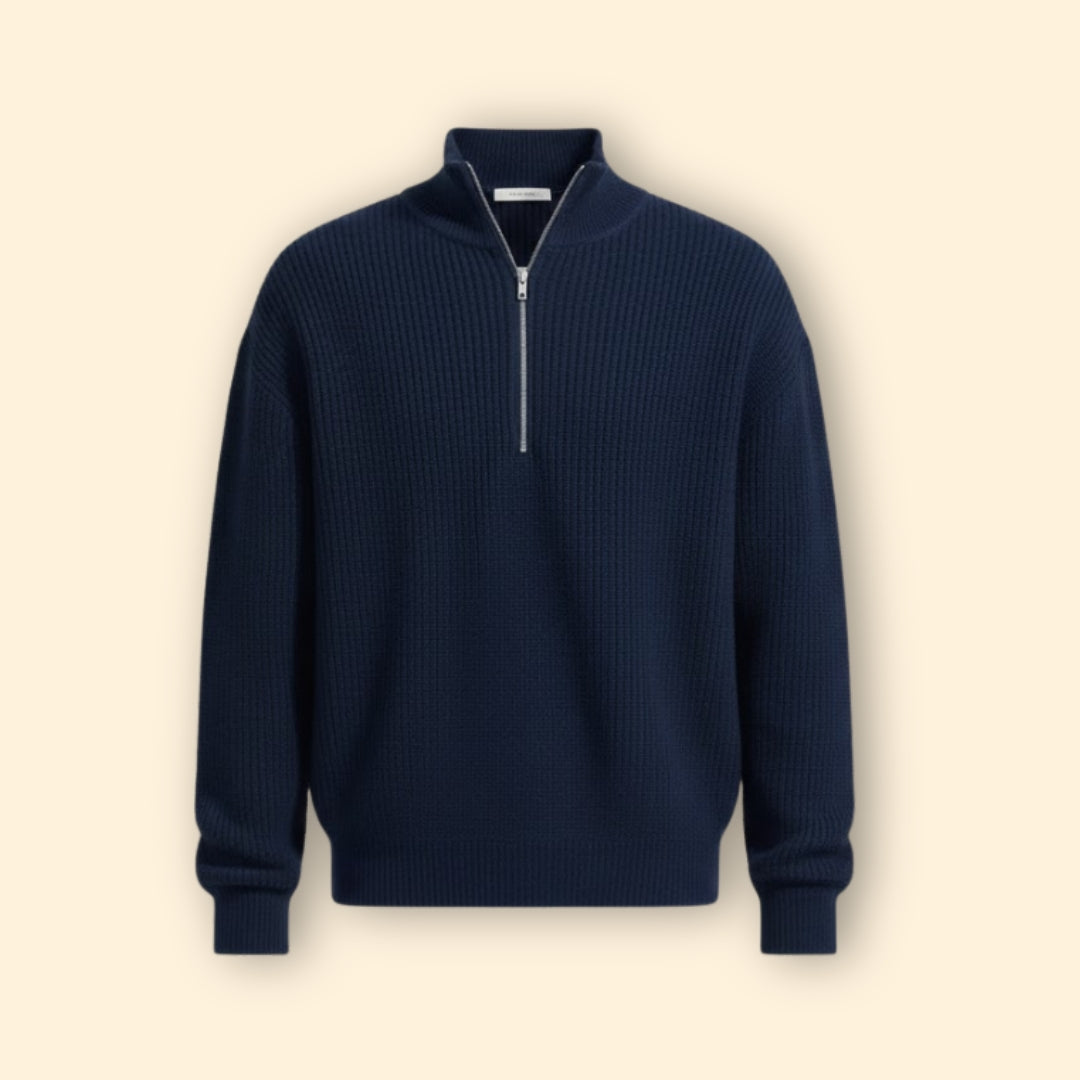 Men’s Half-Zip Sweater with Ribbed Hem