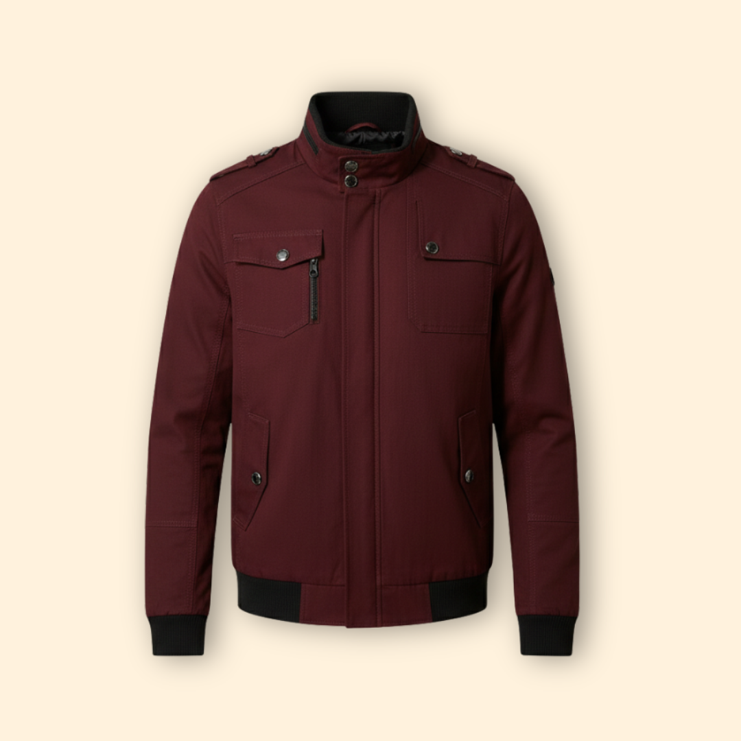 Men’s Cotton Bomber Jacket with Stand-Up Collar