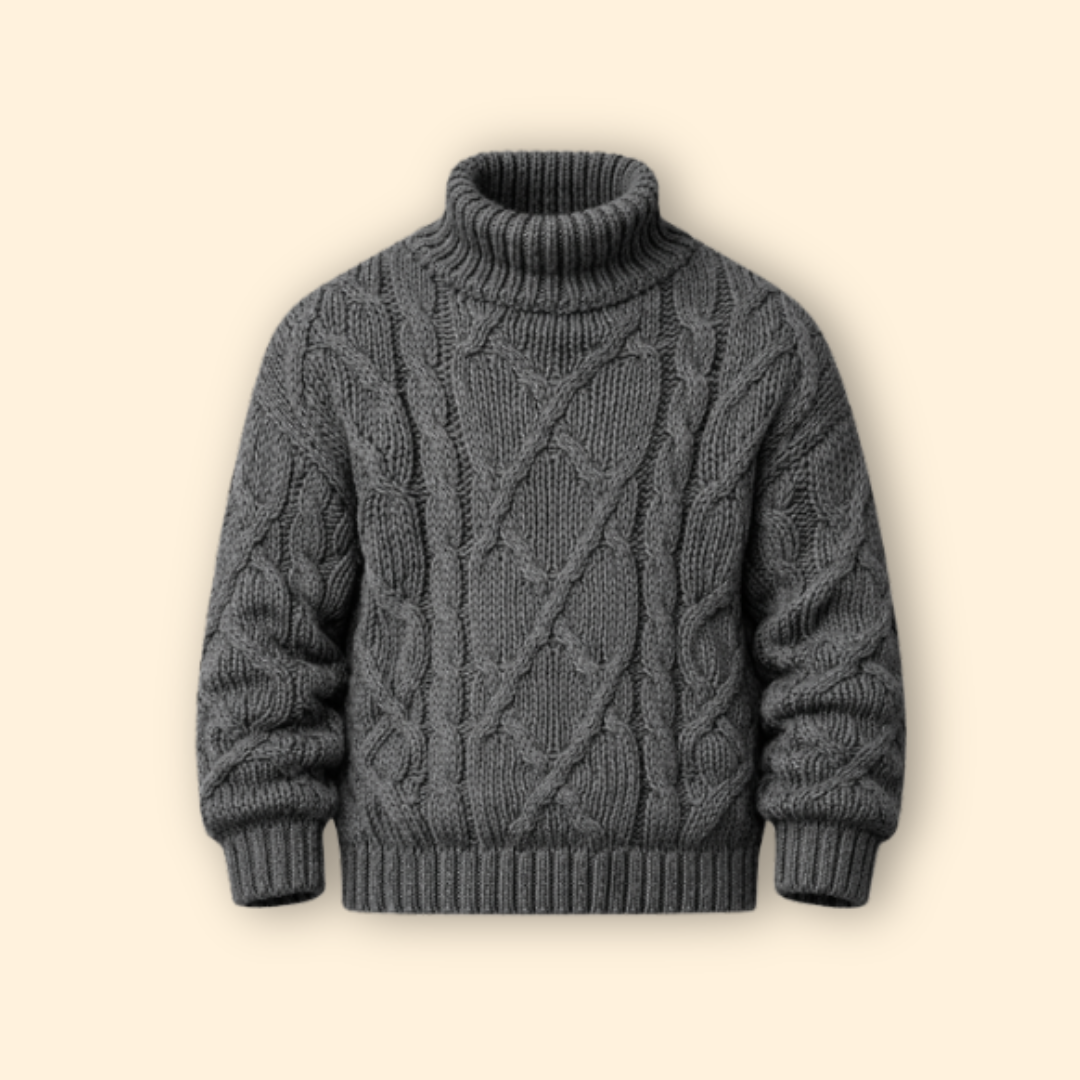 Men’s Turtleneck Sweater with Cable Knit Pattern