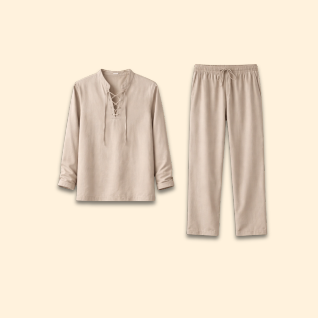 Men’s Two-Piece Set with Lace-Up Shirt
