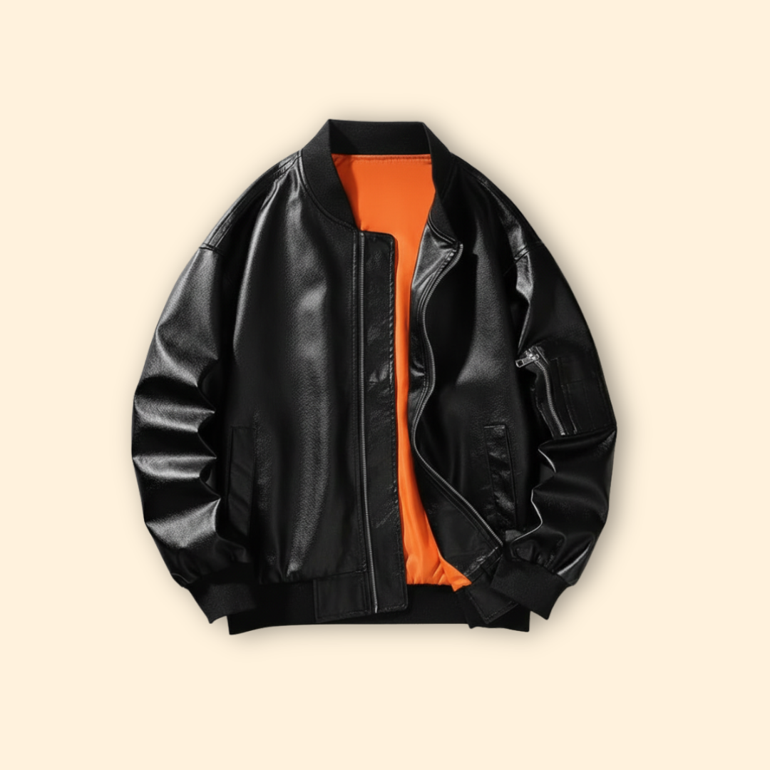Men’s Vegan Bomber Jacket with Ribbed Hem Design