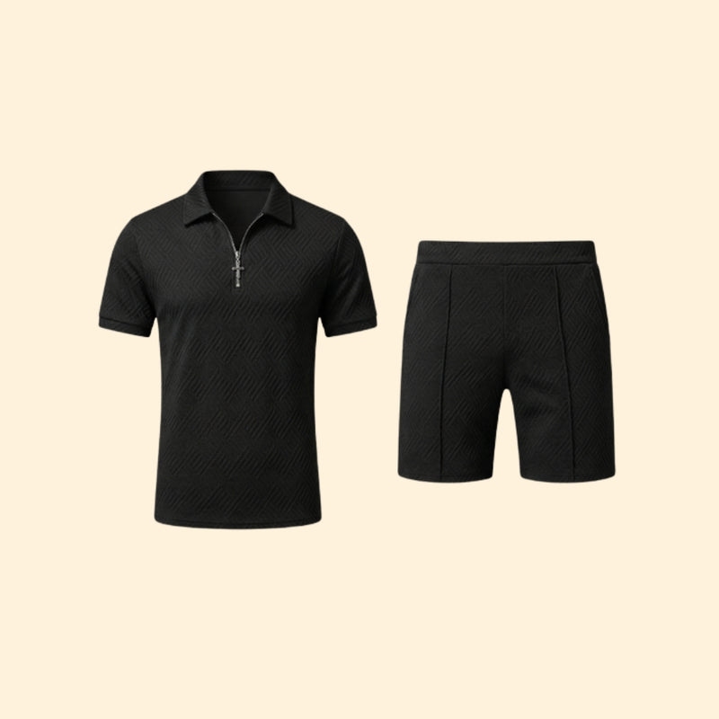 Men’s Zip-Up Polo Set with Short Pants