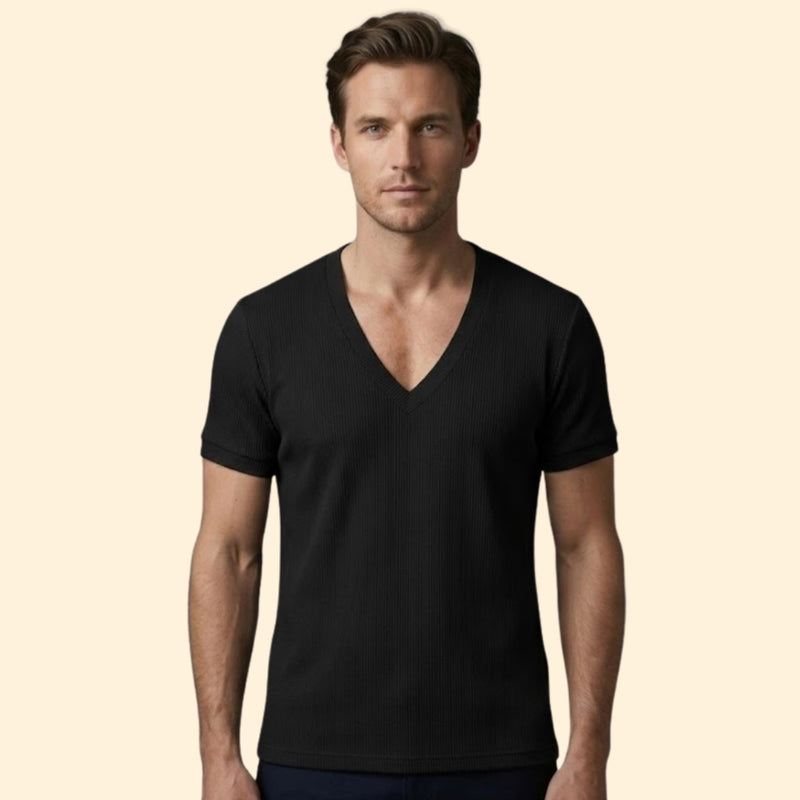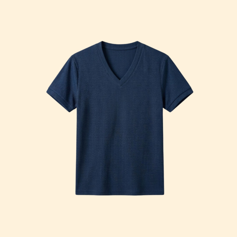 Men’s Casual V-Neck T-Shirt with Ribbing
