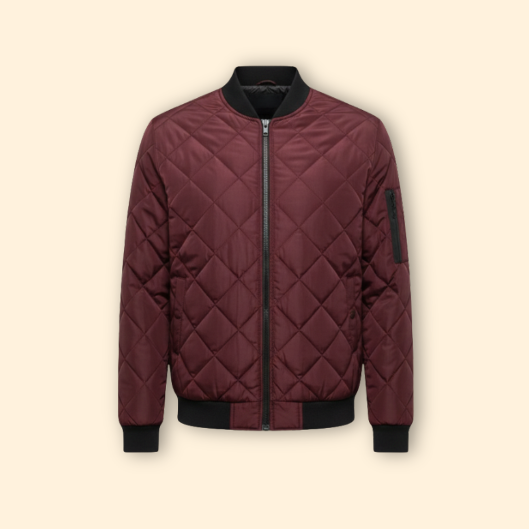 Men’s Diamond-Quilted Jacket with Front Zipper