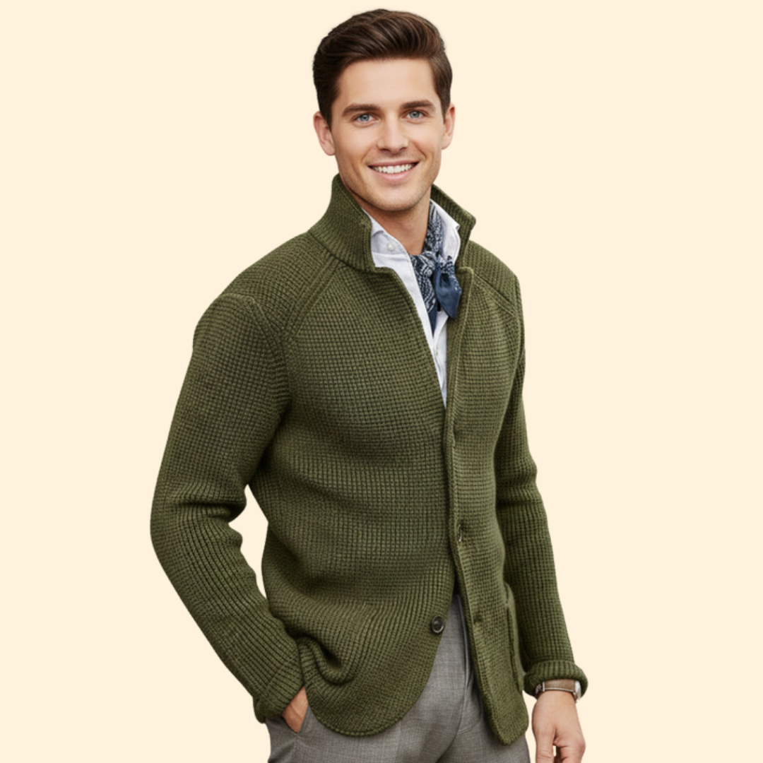 Men’s Knit High Neck Cardigan with Buttons