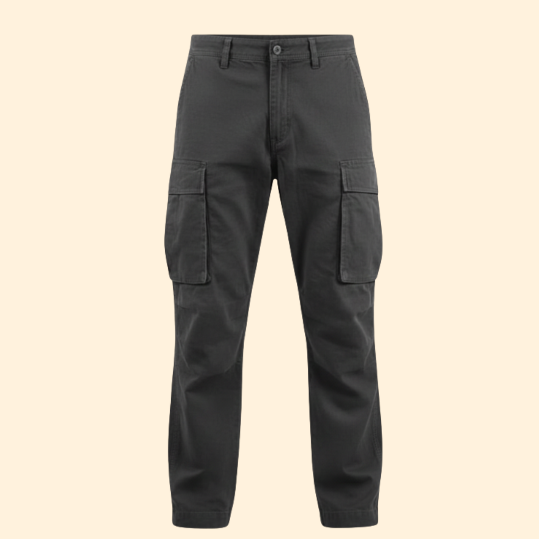 Straight-leg cargo pants designed with a relaxed cut and multiple utility pockets. Features include belt loops, reinforced seams, and an adjustable hem. Constructed using textile material for regular wear, the design maintains a clean structure and practical layout intended for repeated everyday use.
