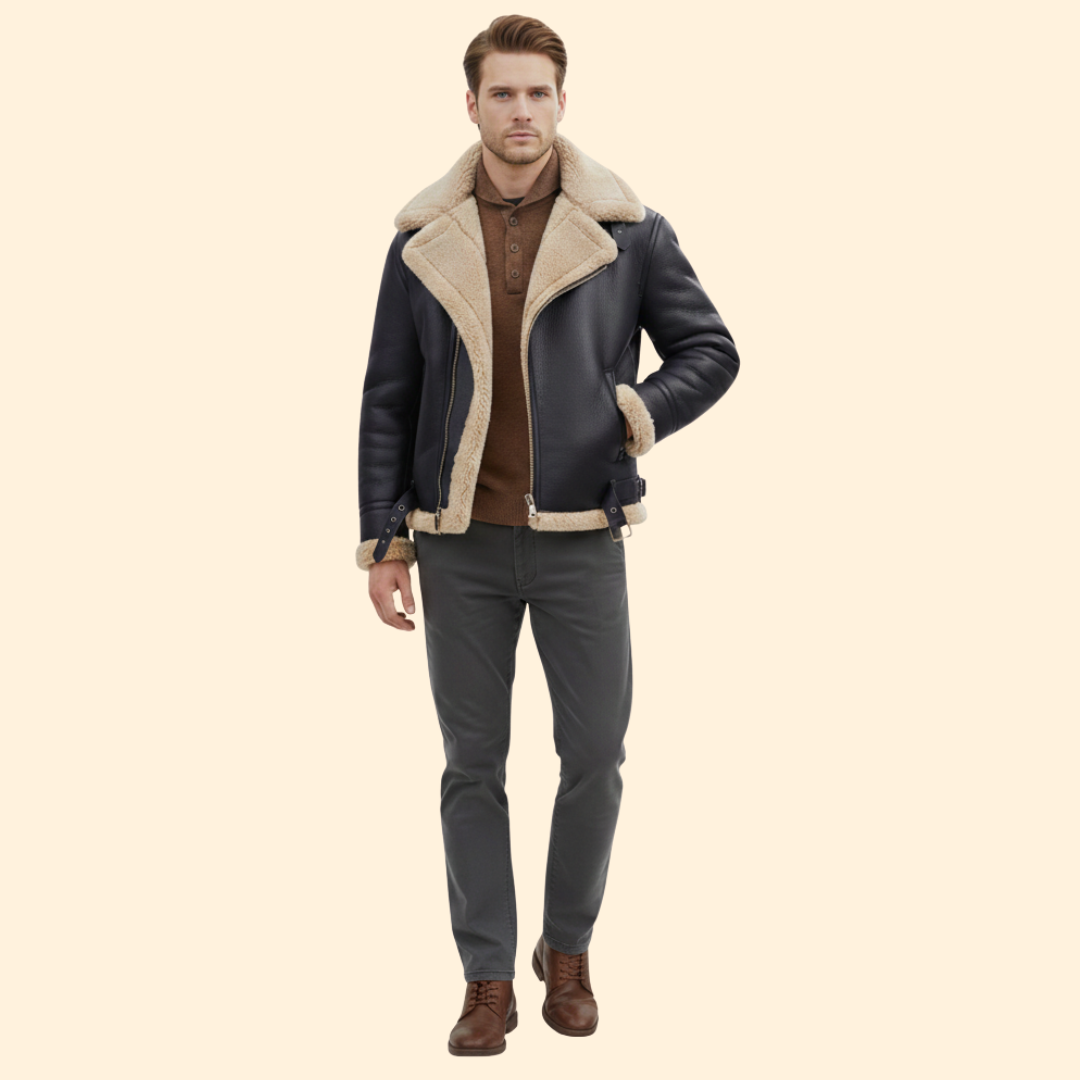 Men’s Zip Front Jacket with Shearling Collar