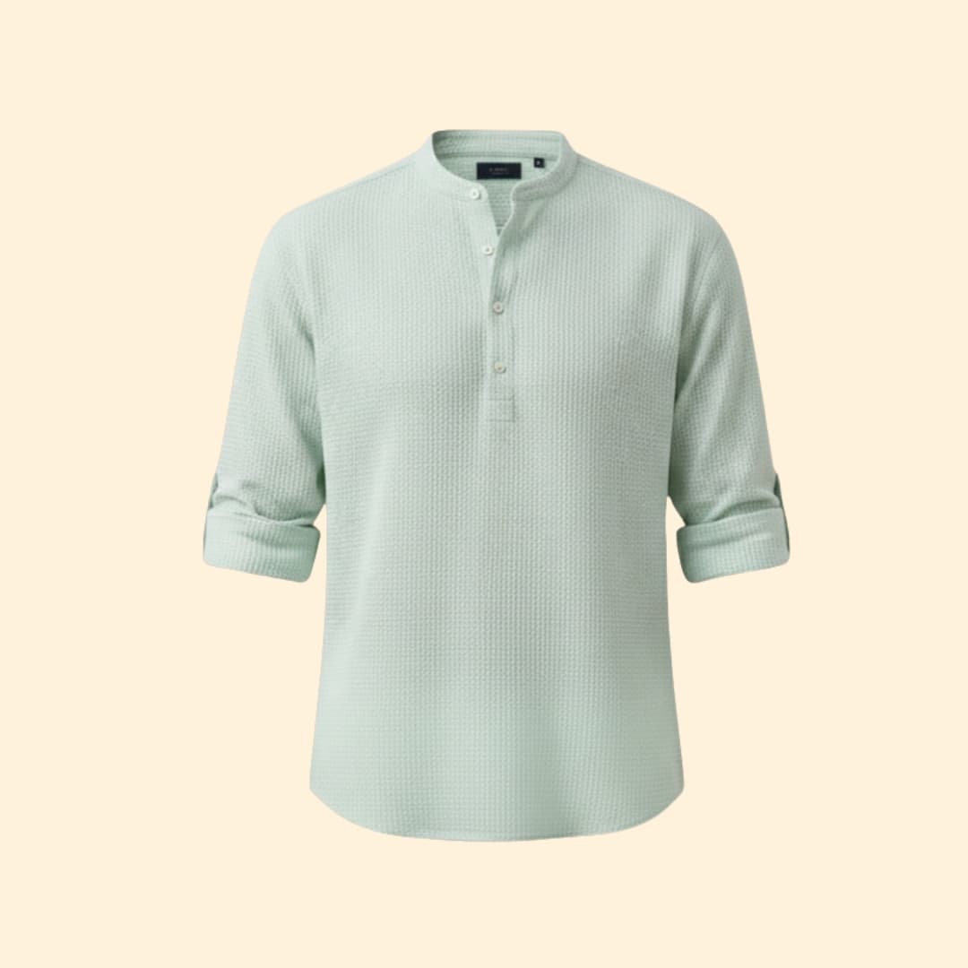 Men's Long Sleeve Shirt with Henley Collar