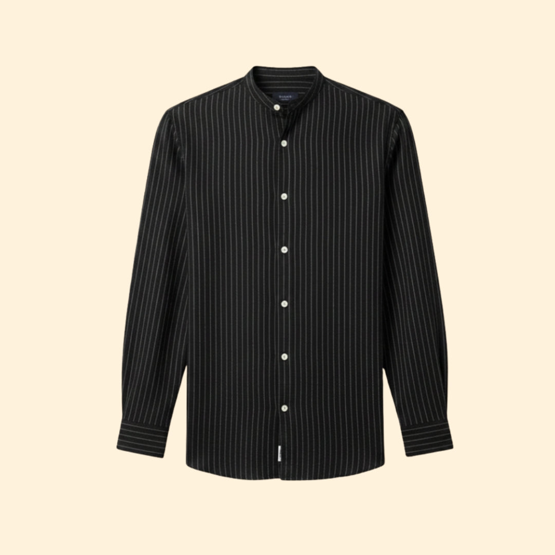 Men's Button-Down Shirt with Stand Collar