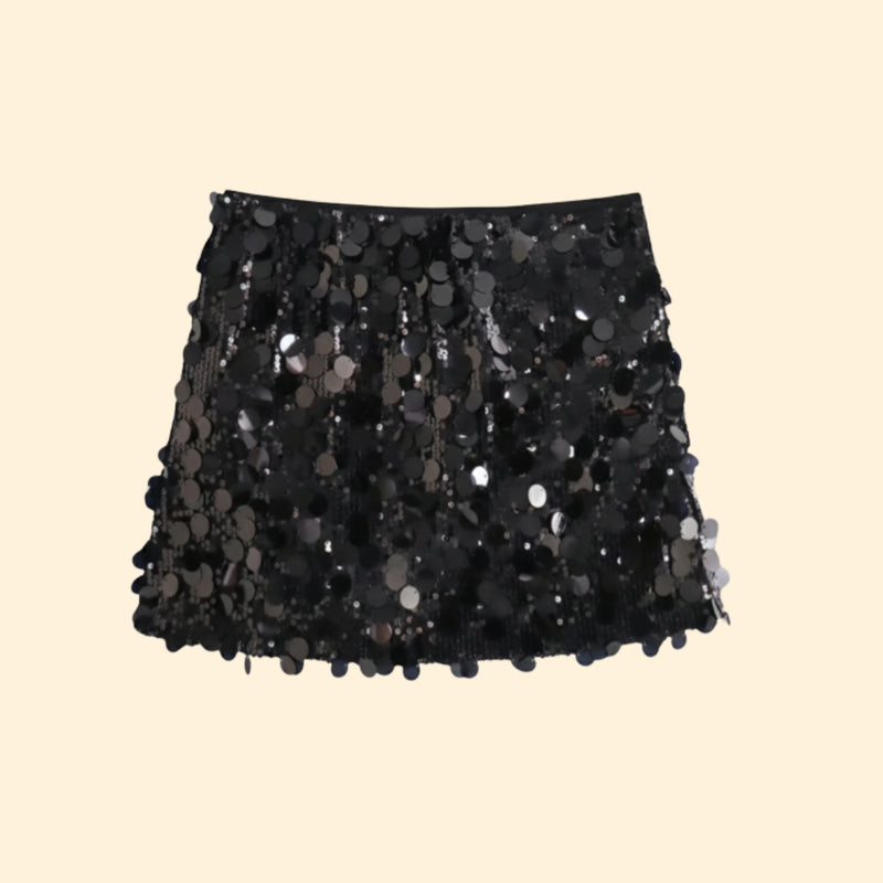 Women’s Short Sequin Skirt with Shiny Detail