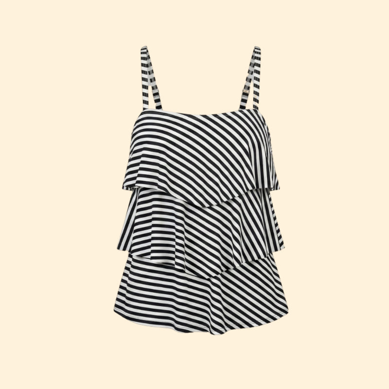 Women’s Striped Tankini Set with Ruffled Layers