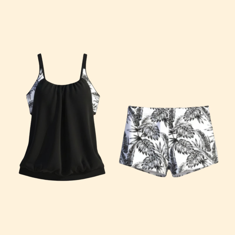 Women’s Two-Piece Tankini with Tropical Print Shorts