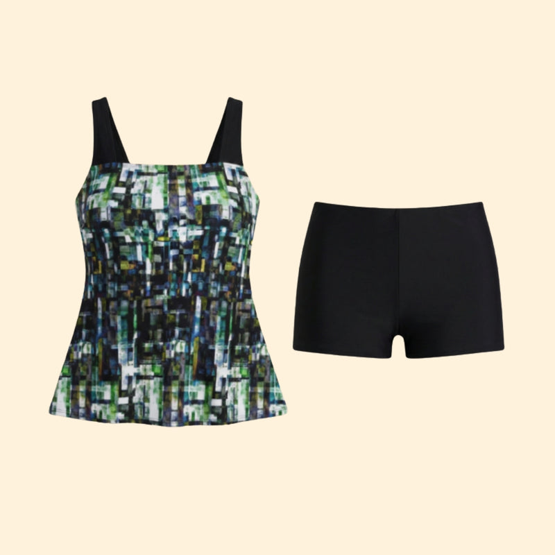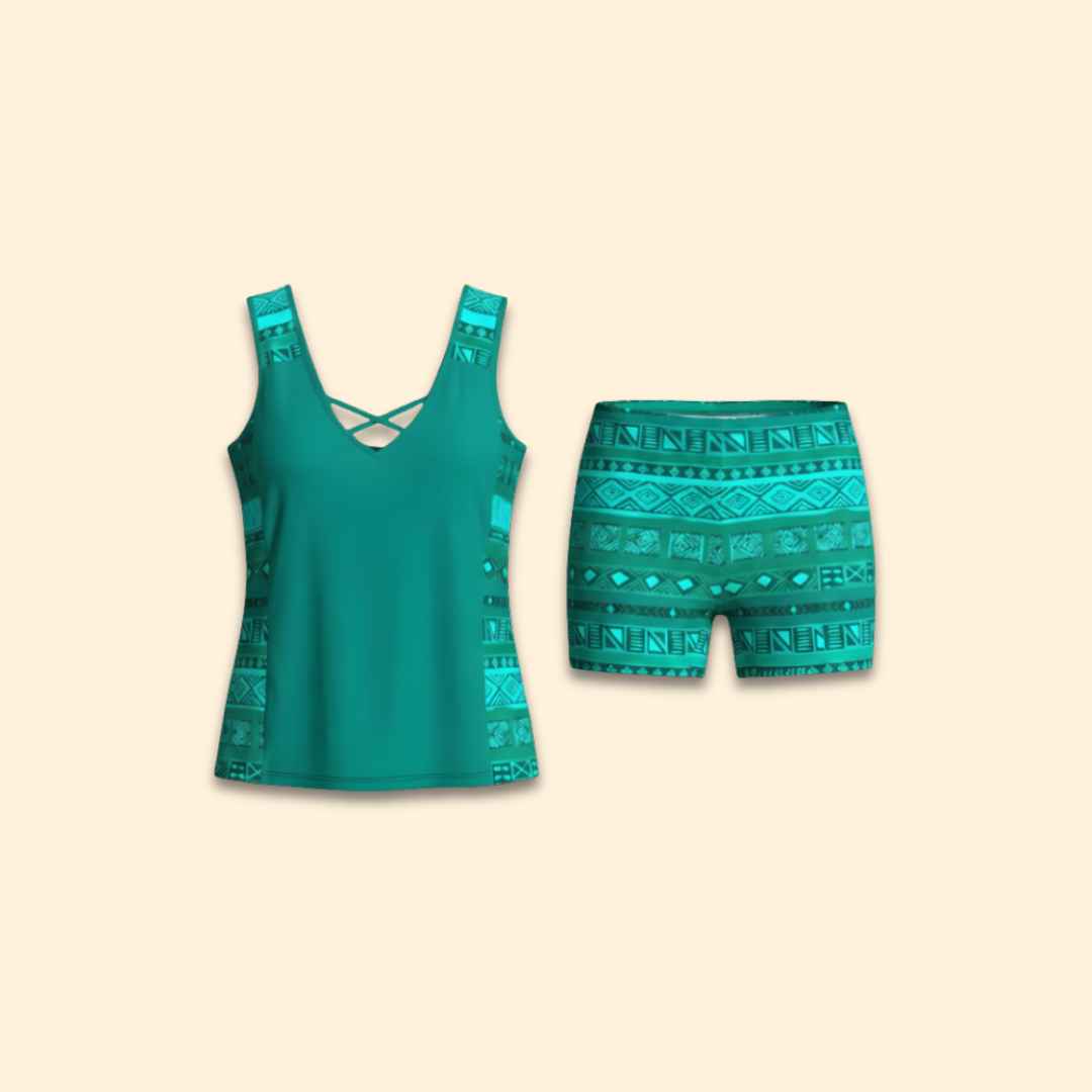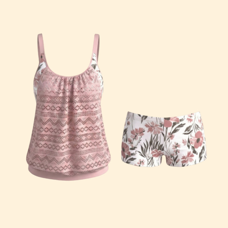 Women’s Two-Piece Tankini with Patterned Top