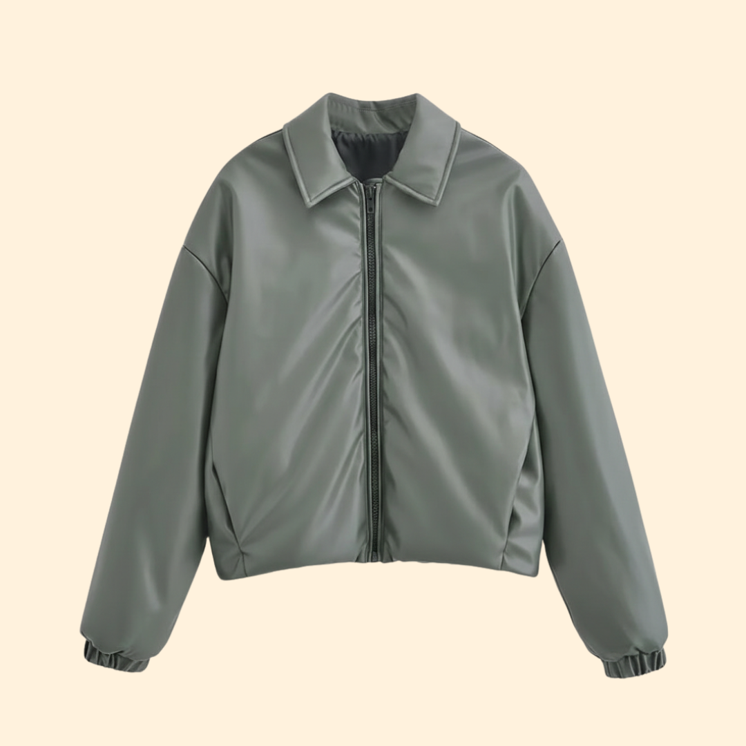 Women’s Bomber Jacket with Front Zipper and Collar