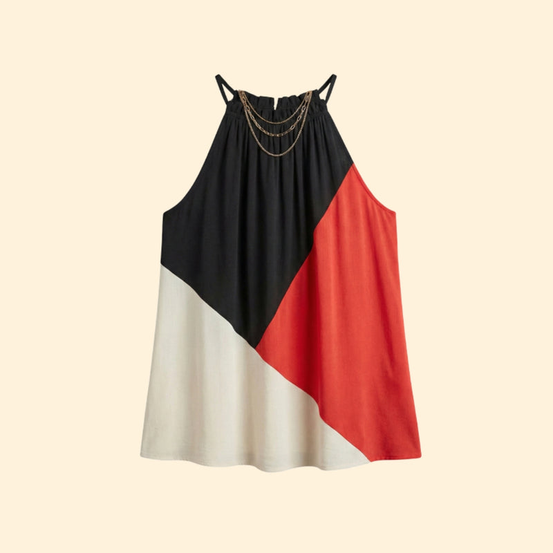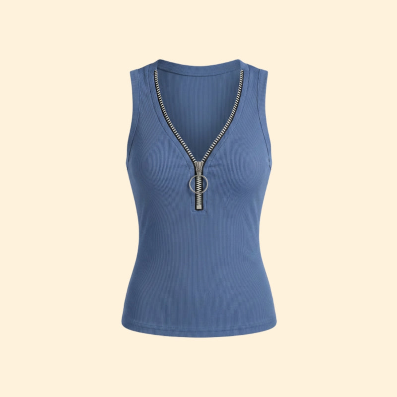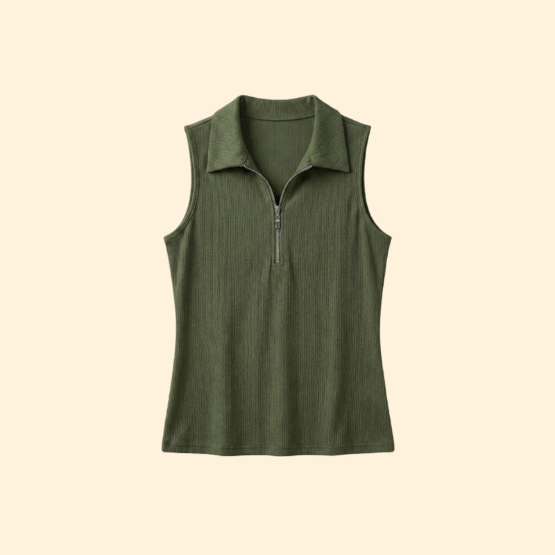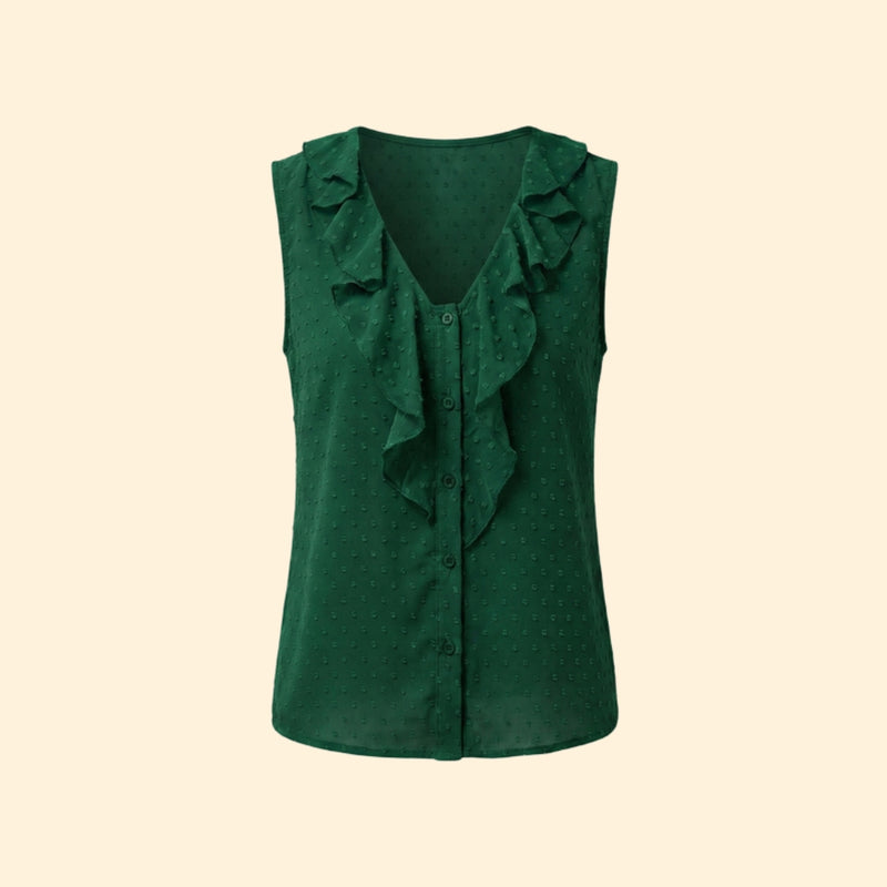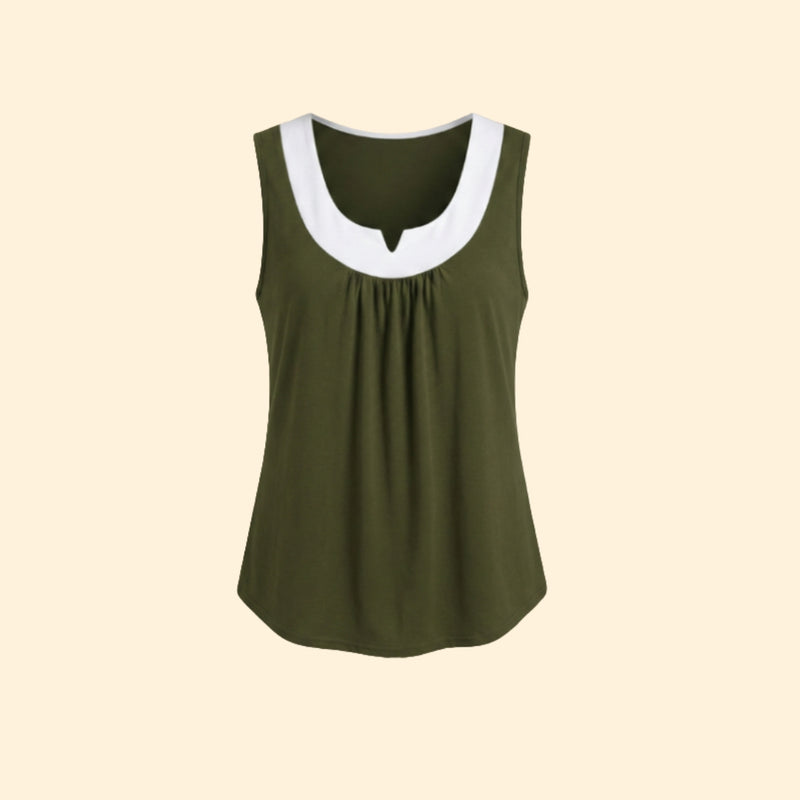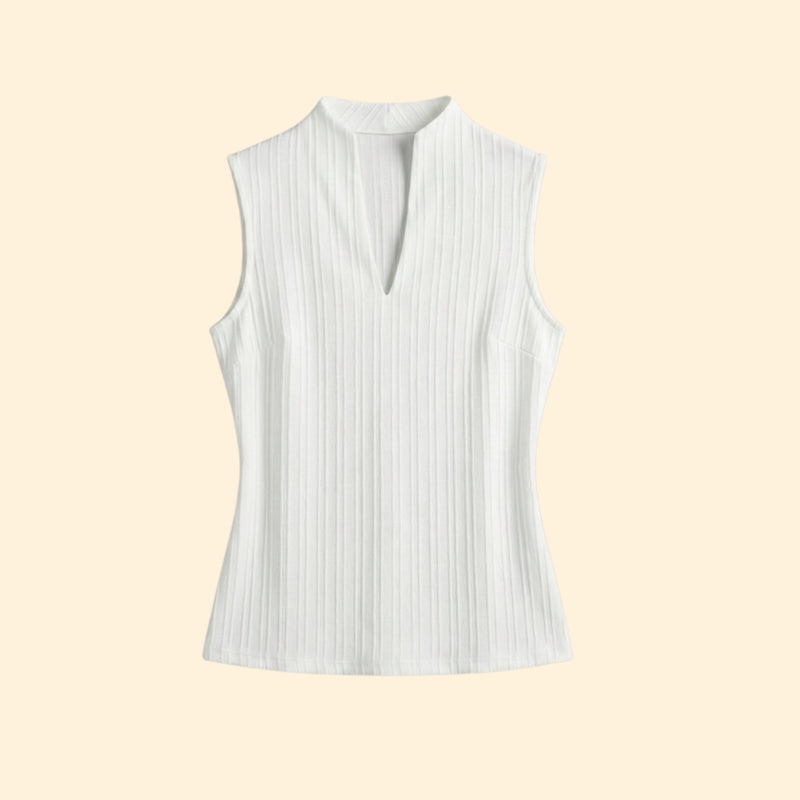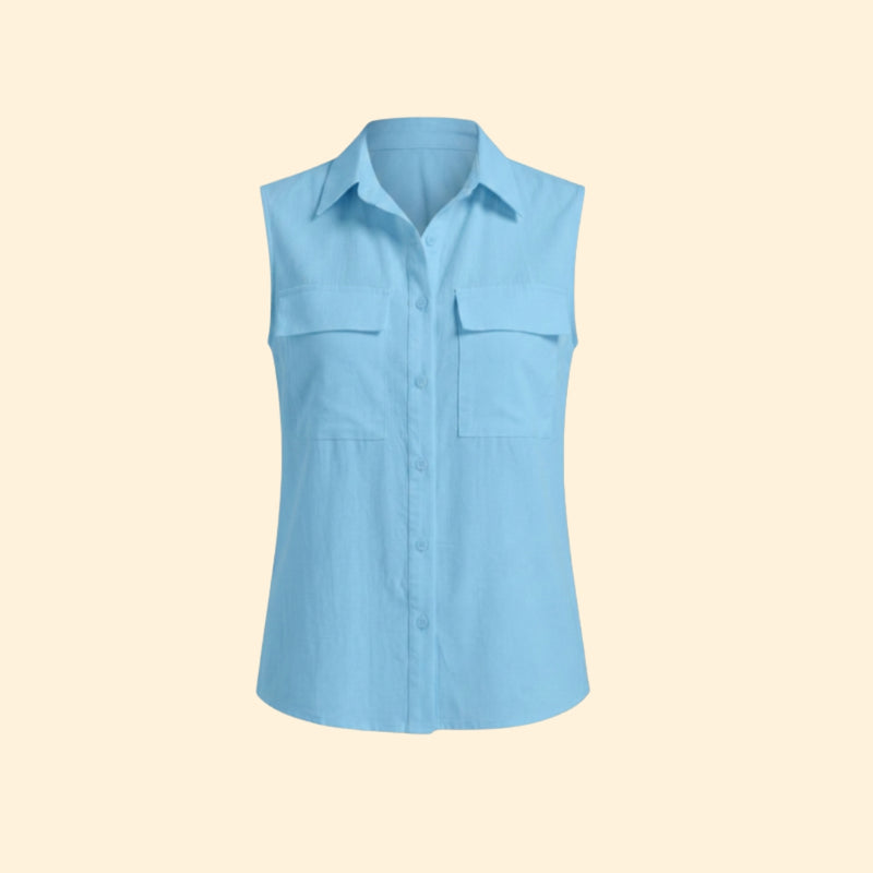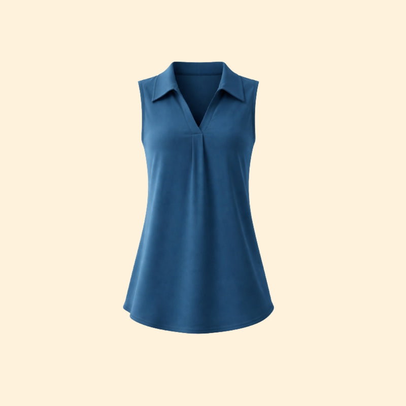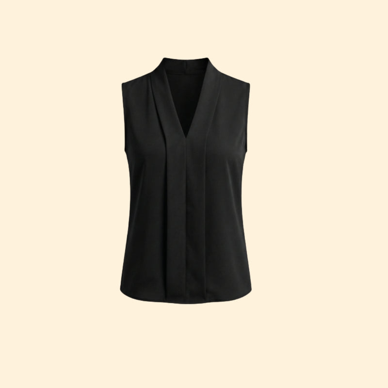 Women’s Sleeveless Blouse with Pleated V-Neck