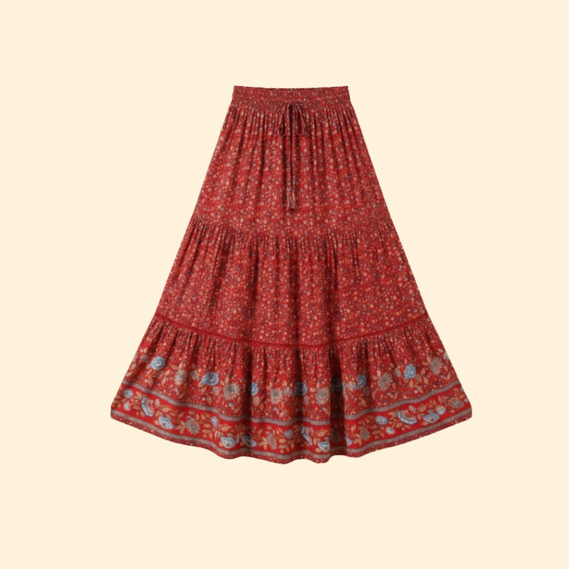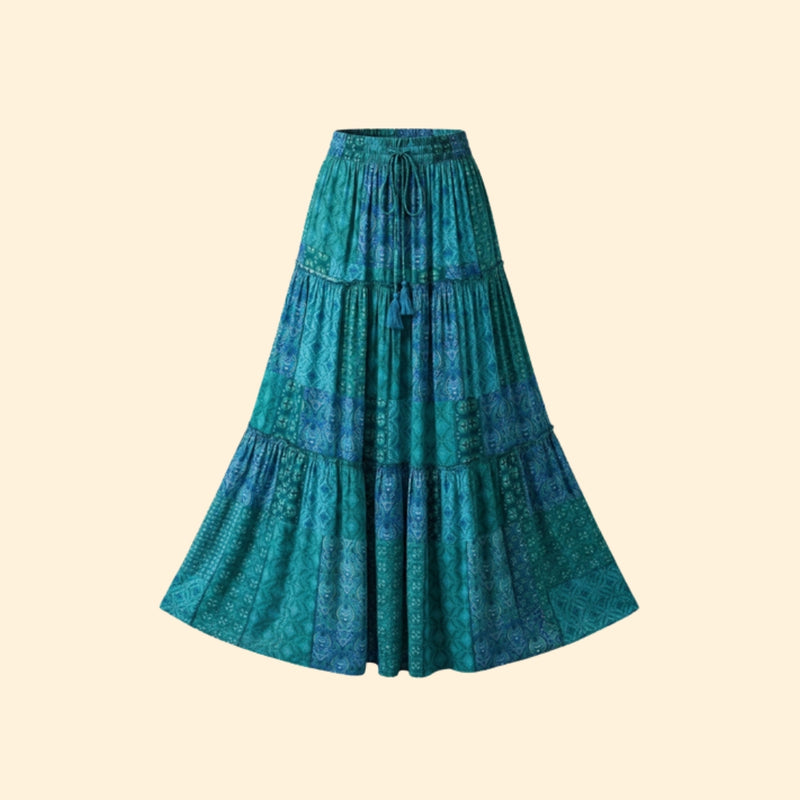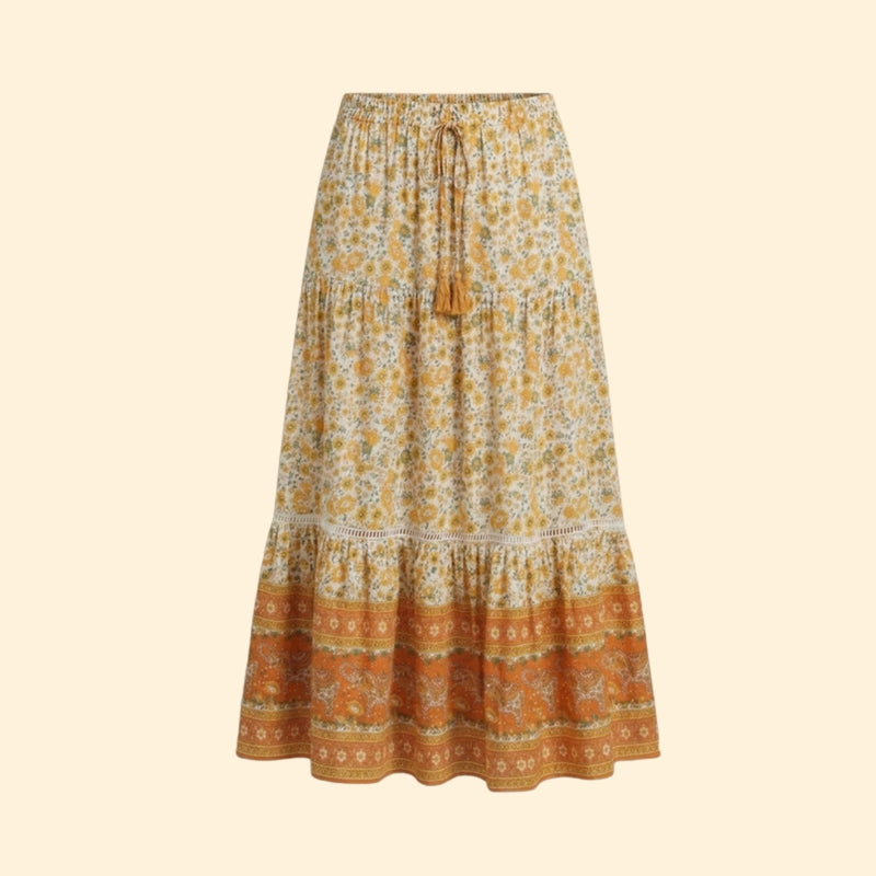 Women’s Bohemian Maxi Skirt with Drawstring Waist