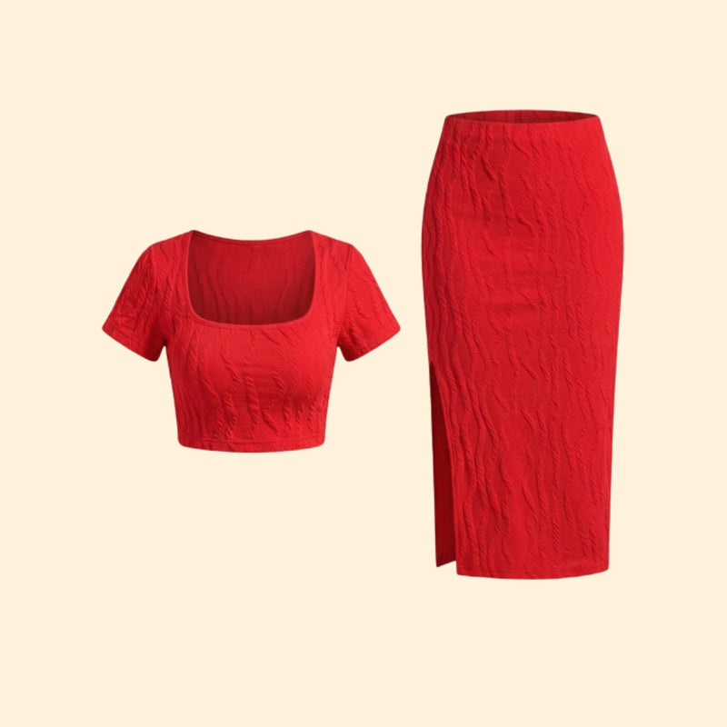 Women’s Ribbed Crop Top and High-Waisted Skirt